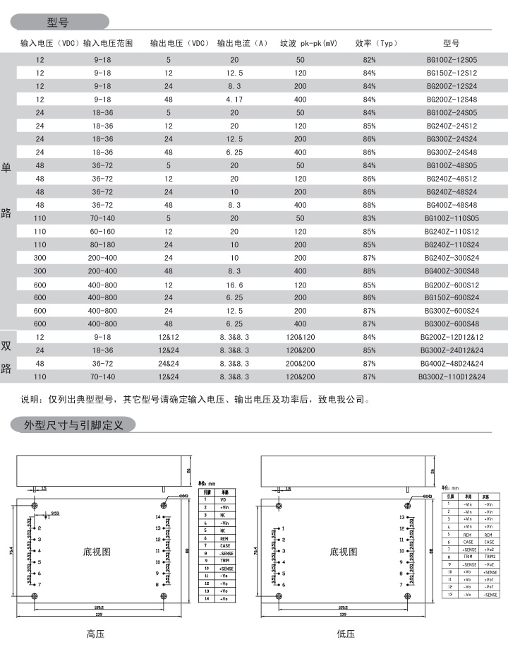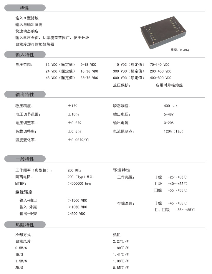 功 率: 150-500W 輸入電壓: 12VDC 24VDC 48VDC 110VDC 300VDC 600VDC 輸出路數(shù): 單路 外形尺寸: 139*88*25.5mm 安裝方式:引針式