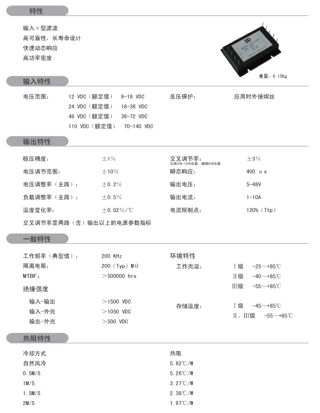 功率:30-100W 輸入電壓:9-18VDC 18-36VDC 36-72VDC 70-140VDC 200-400VDC 輸出路數(shù):單路 雙路 三路 外形尺寸:86*62*18.1mm 安裝方式:引針式