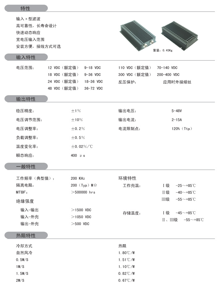 功率:75-150W 輸入電壓:9-18VDC 18-36VDC 36-72VDC 9-36VDC 70-140VDC 200-400VDC 輸出路數(shù):單路 外形尺寸:160*100*35mm 安裝方式:一體式