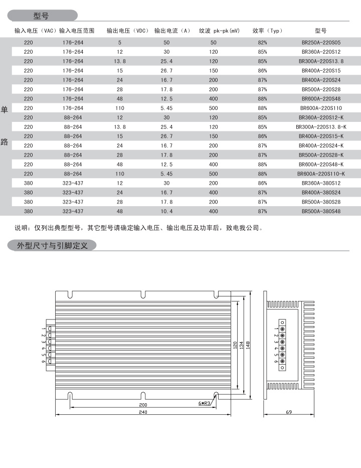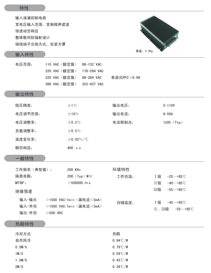 功率:300-500W 輸入電壓:220VAC(176-264V 88-264V) 380VAC 輸出路數(shù):單路 外形尺寸:240*148*69mm 安裝方式:一體式